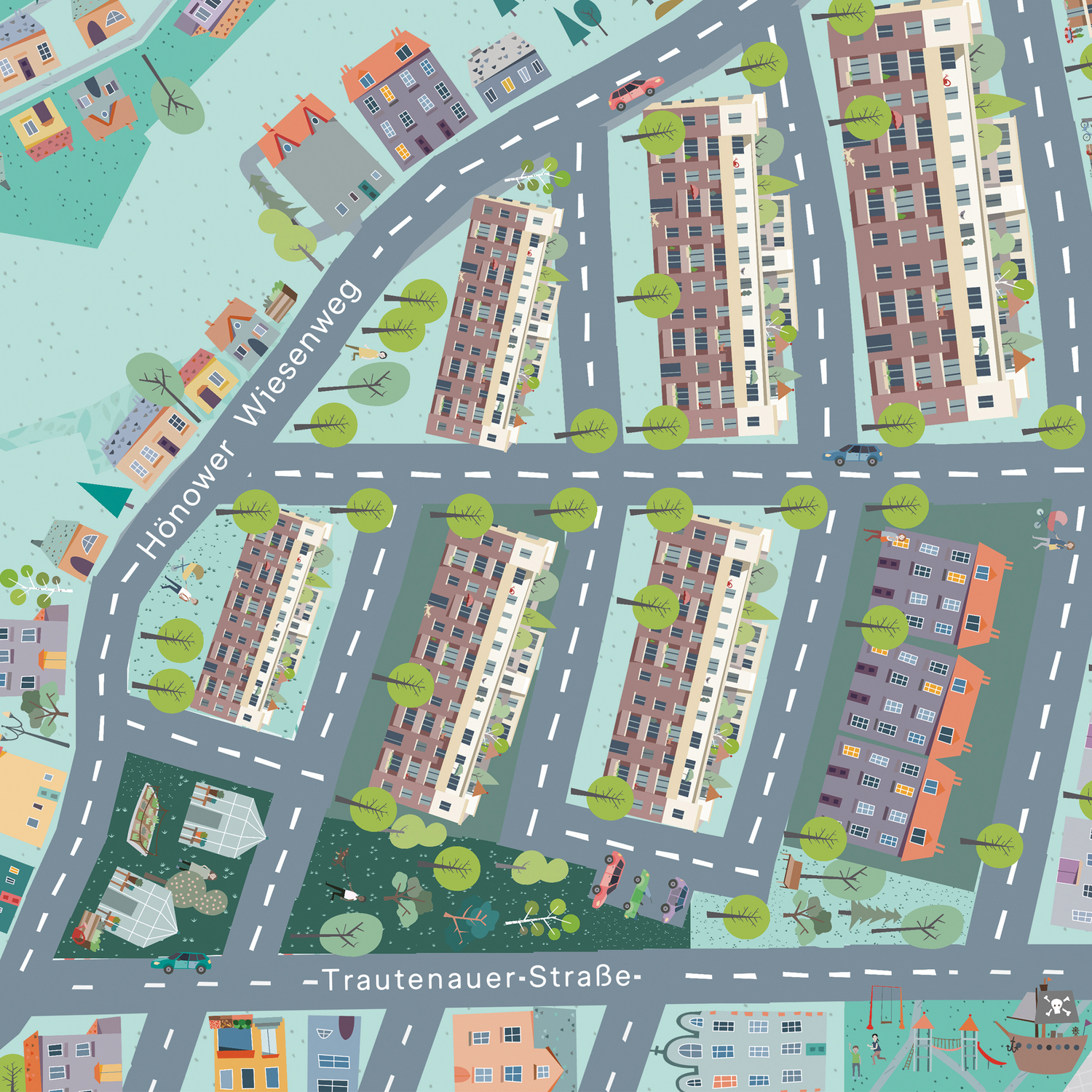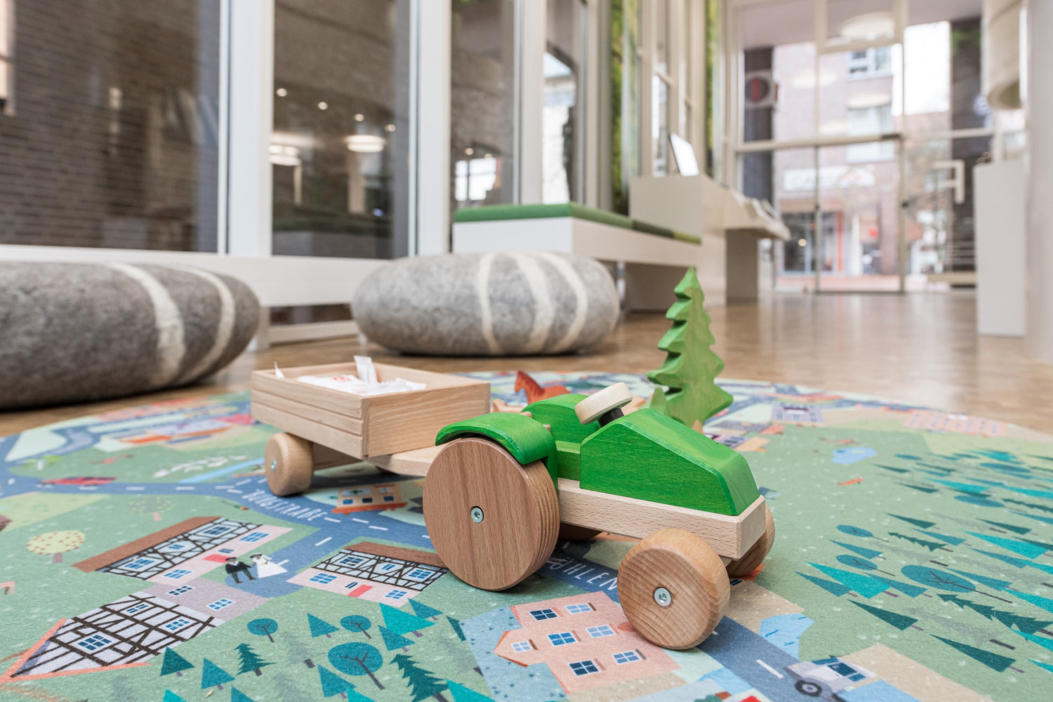 "Wir bauen mehr als Häuser, wir schaffen Wohnumfelder zum Wohlfühlen", versprechen die international agierenden Projektentwickler von Bonava im Wohnungsbau aus Schweden. Deswegen haben sie uns damit beauftragt, für die Info-Büros ihrer Neubauprojekte, Spielteppiche zu gestalten. Sie sollen die geplanten Gebäude im zukünftigen Umfeld darstellen.